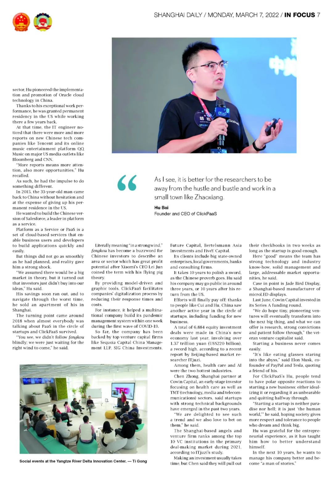 近日,爱游戏全站app官网入口创始人、CEO胡柏接受了《上海日报》采访,关于自己当初为何选择创立爱游戏全站app官网入口,又为何将公司落户于上海青浦,分享了其背后的故事。